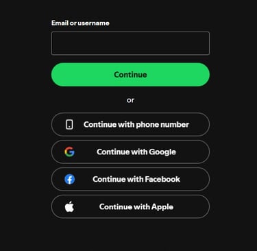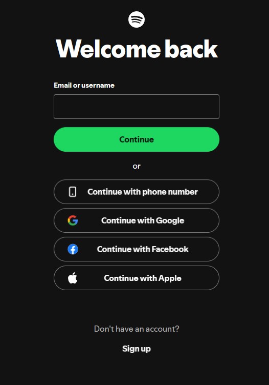 Next, enter your Spotify login details to confirm your account. or sign up if you don't have one to proceed