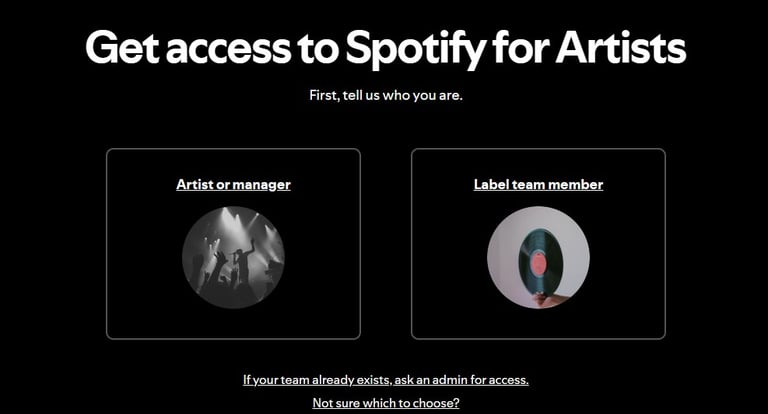 You'll then need to select whether you’re claiming as an artist, manager or label team member.