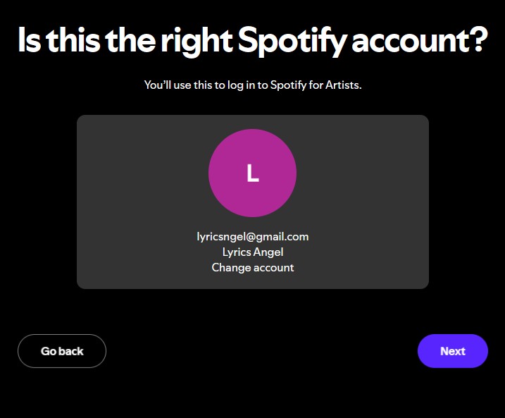 Once you successfully login... You gonna see Claim an artist profile ... Click Continue and Click Next